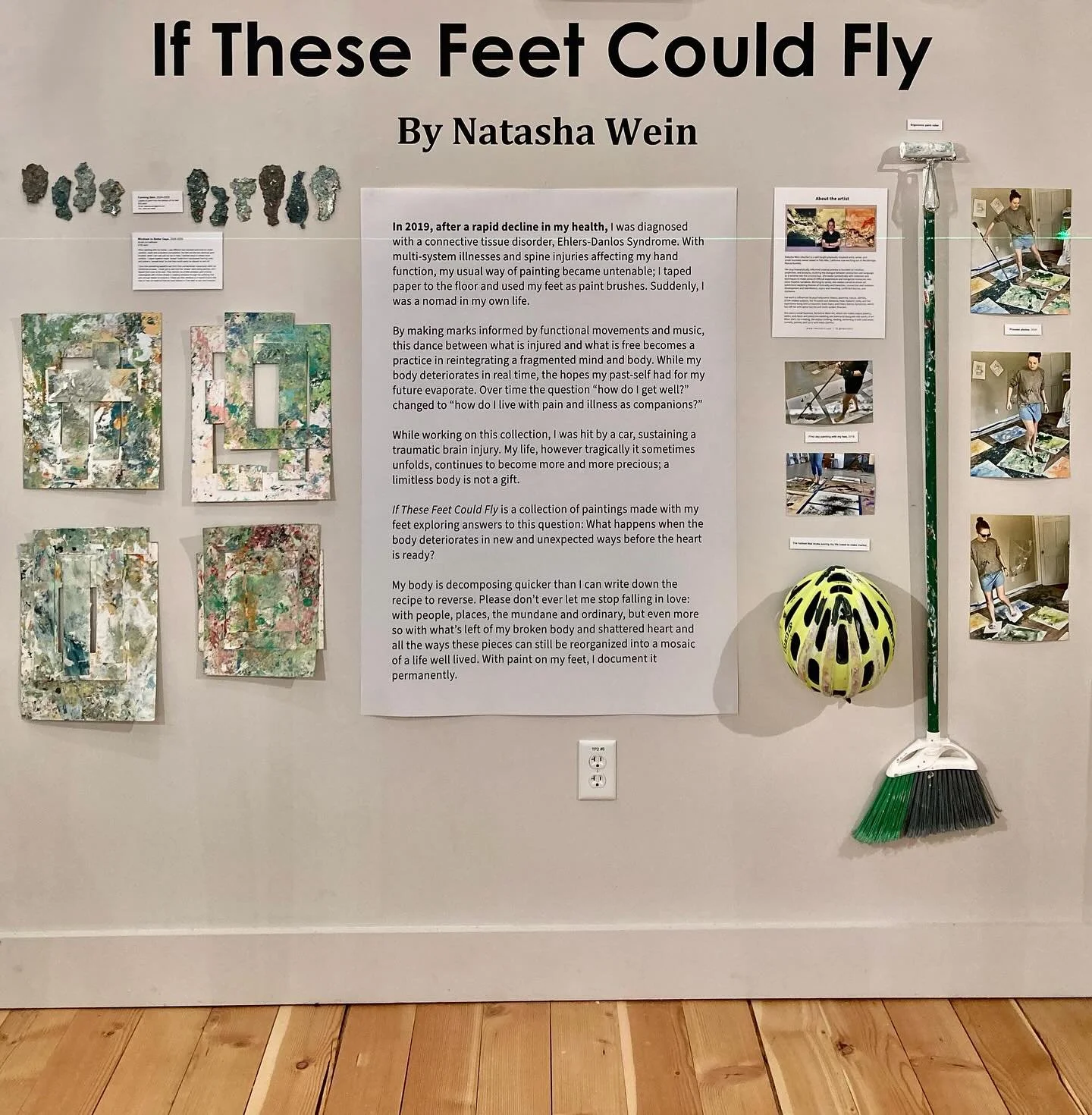 She primarily works with acrylic, gouache, ink, and pencil on paper and canvas and experiments with different ways to leave impressions, including using ergonomic movements as a guide to making marks with her feet. Her work is influenced by psychodynamic theory, anatomy, nature, identity, STEM-related subjects, her bicoastal and Aotearoa (New Zealand) roots, and her experience living with a traumatic brain injury and Ehlers-Danlos Syndrome, which has left her with incurable spine injuries and multi-system illnesses.